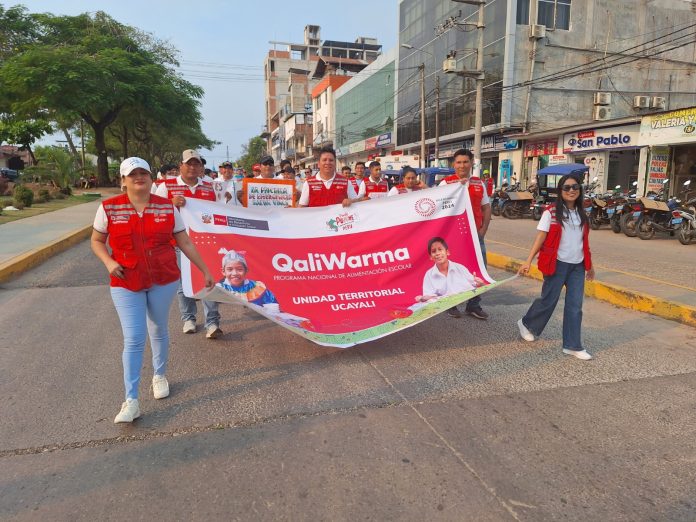 El Programa Nacional de Alimentación Escolar Qali Warma se sumó al vistoso pasacalle de sensibilización en Pucallpa (Ucayali) con la finalidad de informar y concientizar a la población para participar en el II Simulacro Nacional Multipeligro, que se llevará a cabo el 15 de agosto a las 3 de la tarde.
