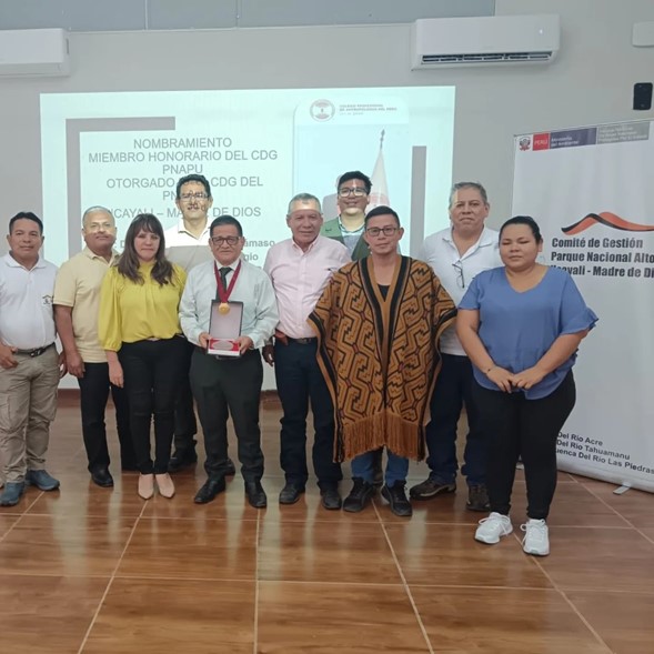 Directivos del Comité de Gestión del Parque Nacional Alto Purus, en una ceremonia especial, expresaron su reconocimiento al actual Decano Nacional del Colegio de Antropólogos del Perú, Dr. Manuel Cuentas Robles, considerado el autor de los estudios académicos y científicos que sustentaron la creación del Área Natural Protegida conocida como Parque Nacional Alto Purús, la más extensa de nuestro país.