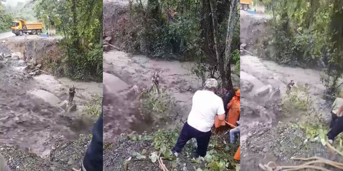 Un dramático rescate, captado en video por un espectador, muestra el momento en que una mujer es sacada del peligro por un grupo de personas después de que su vehículo fuera arrastrado por un huaico.