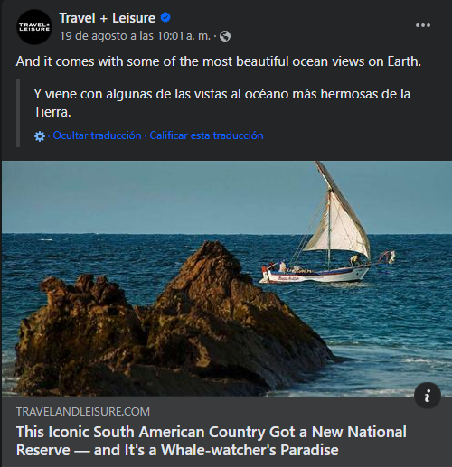 La prestigiosa revista estadounidense Travel + Leisure, con una audiencia de más de 10 millones de lectores, ha destacado la Reserva Nacional Mar Tropical de Grau, situada en las regiones de Piura y Tumbes, Perú, por su impresionante belleza paisajística. El artículo, titulado «Este emblemático país sudamericano tiene una nueva reserva nacional y es un paraíso para los observadores de ballenas», subraya la importancia de este ecosistema, considerado uno de los más hermosos a nivel mundial.