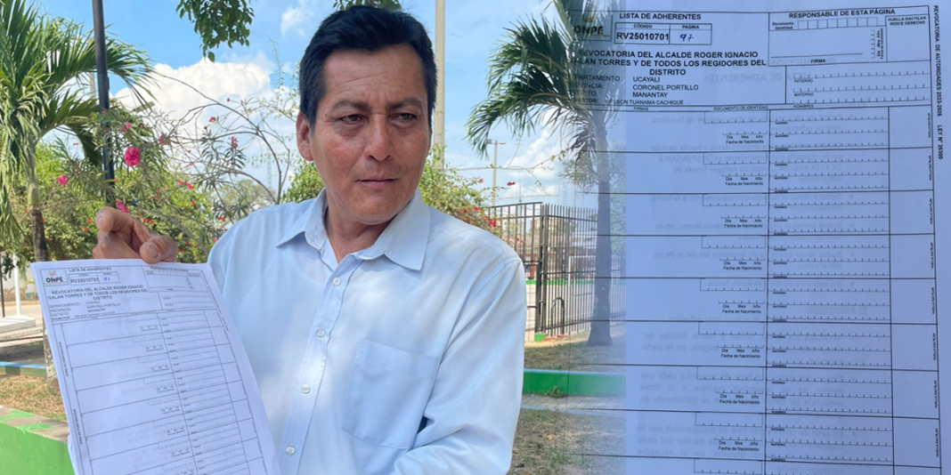 Tuanama Cachique, indicó que la Oficina Nacional de Procesos Electorales (ONPE) ha aceptado el kit de revocatoria, y ahora, el siguiente paso es recolectar firmas. El objetivo es alcanzar el 25%, que representaría a 18,000 firmas del distrito de Manantay, requisito necesario para presentar la solicitud ante la Subgerencia de Verificación de Firmas y Apoyo Técnico Electoral del Registro Nacional de Identificación y Estado Civil (RENIEC).