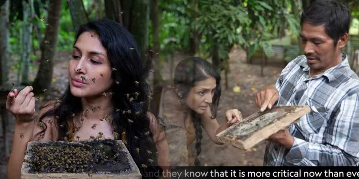 En medio de la densa selva peruana, el lente de la cámara sigue a Vásquez, una joven peruana que, a pesar de su formación en ciencias ambientales, sigue sorprendida por la biodiversidad que la rodea. A medida que avanza con una lupa en mano, su entusiasmo por descubrir nuevas especies y su compromiso con la conservación se hacen evidentes. Las abejas que estudia, a diferencia de las melíferas, no tienen aguijón y están amenazadas por la deforestación y el uso de pesticidas.