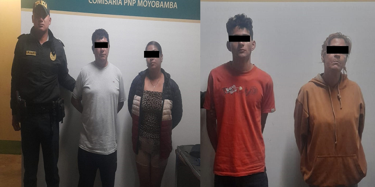 Los integrantes de la banda criminal «Los Malditos del Edén» fueron ubicados caminando por la carretera Moyobamba-Yantaló. Los detenidos fueron identificados como Keen Pérez Alarcón (22), Karina Fachín Carbajal (47), Alberio Copia Diego (45) y Ruth Llaja Cabrera (36).