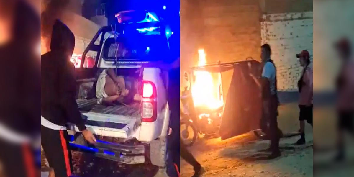 En la tercera etapa de la urbanización Jardín, en Sullana, Piura, un grupo de vecinos tomó justicia por mano propia al linchar a un delincuente acusado de asaltar a una joven con un arma de fuego. No conformes con esto, quemaron la mototaxi en la que el presunto ladrón se desplazaba.