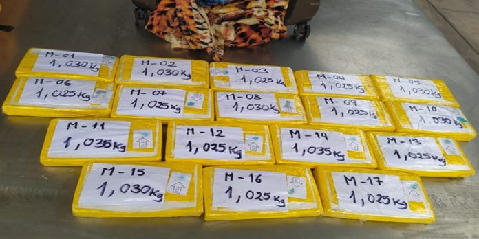En un operativo conjunto realizado en el puesto de control aduanero Vila Vila, agentes policiales de la división de investigación criminal PNP Tacna, en coordinación con personal de Sunat Aduanas, decomisaron un total de 17.475 kilogramos de alcaloide cocaína. La droga era transportada en el equipaje de un pasajero.