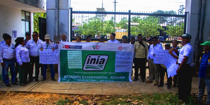 Los trabajadores del Instituto Nacional de Innovación Agraria (INIA) sede Pucallpa, acataron un plantón a nivel nacional, en reclamo para cumplir acuerdos económicos, laborales, técnicos e implementación de la Ley de Seguridad, Salud y Trabajo (SST) 29783.
