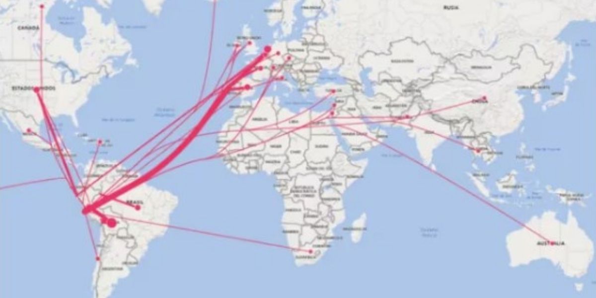 Entre los principales países latinoamericanos destinatarios de cocaína, están: Bolivia, con el 38.96%; Brasil, con el 6.50%; y Chile con el 0.47%.