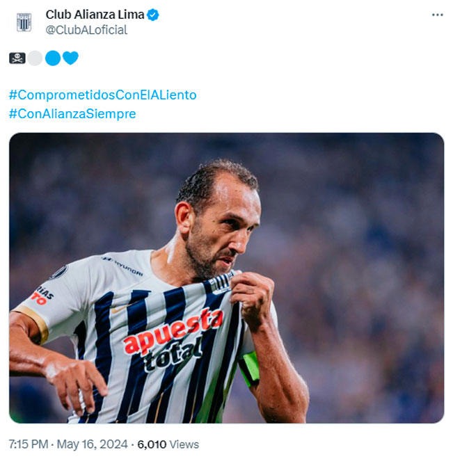 El club victoriano colocó una foto de Hernán Barcos en su cuenta de X tras la derrota de Universitario. Foto: Alianza Lima