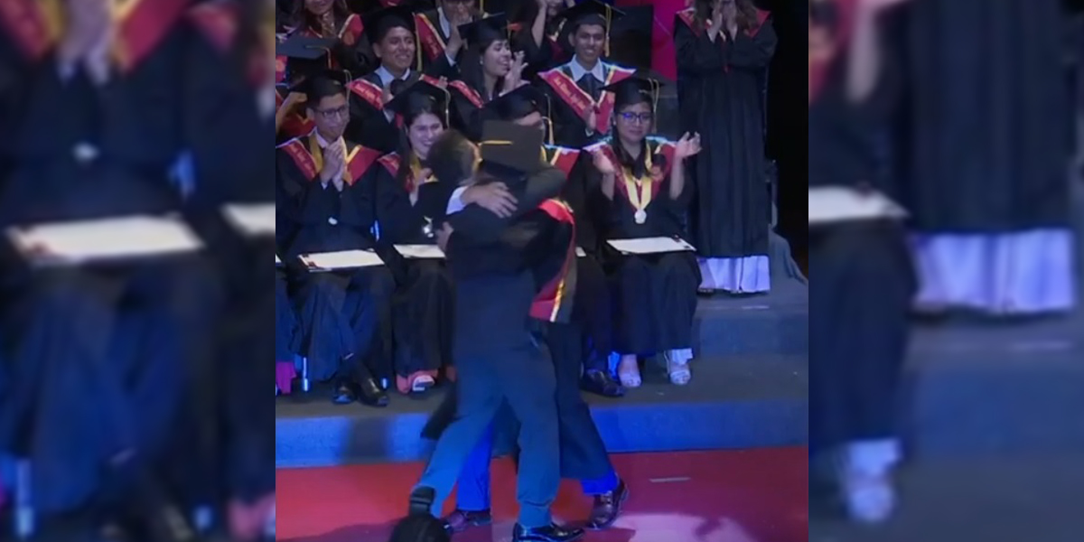 Durante la ceremonia en la UNMSM, el estudiante fue llamado al escenario para recibir su diploma, siendo ovacionado por sus compañeros y profesores. Sin embargo, la mayor sorpresa llegó cuando el presentador mostró un emotivo video de su padre desde España, felicitándolo y expresando su orgullo por sus logros académicos.