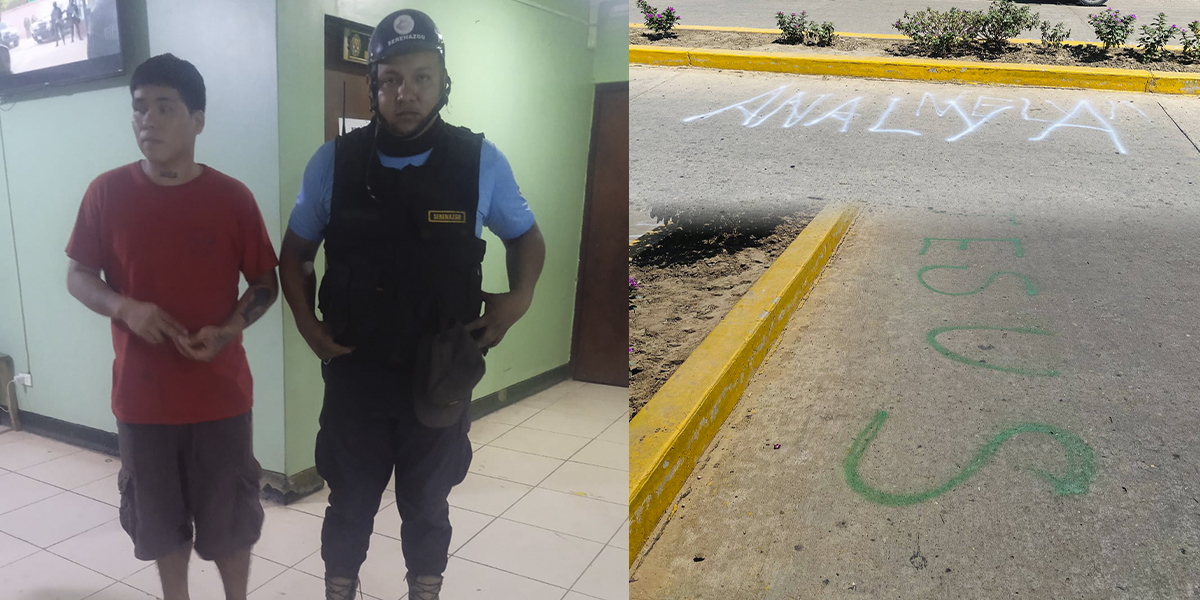 Los agentes de Serenazgo de la Municipalidad Distrital de Yarinacocha capturaron a Bryan Luis Ávila Reátegui, mientras pintaba ilegalmente la vía pública en la intersección de la Avenida Yarinacocha con el jirón 2 de Mayo.